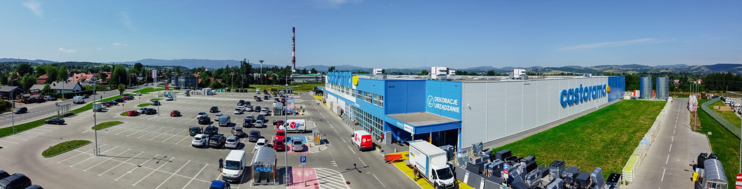 Prace geodezyjne dla marketu Castorama w Nowym Sączu obejmowały pełny nadzór pomiarowy nad wznoszeniem hali handlowej oraz zagospodarowaniem całego terenu inwestycji. Nasz zespół odpowiedzialny był za precyzyjne wytyczenie fundamentów, osi konstrukcyjnych hali oraz stały monitoring niwelacyjny podczas realizacji wielkopowierzchniowych posadzek przemysłowych. Istotnym elementem zadania było również wytyczenie rozbudowanego układu komunikacyjnego, parkingów oraz gęstej sieci instalacji podziemnych niezbędnych do funkcjonowania obiektu tej skali. Dzięki wykorzystaniu technologii bezzałogowych statków powietrznych (widoczne na ujęciach NSCastorama_00), wykonaliśmy precyzyjne naloty fotogrametryczne, które usprawniły zarządzanie placem budowy i pozwoliły na rzetelną inwentaryzację powykonawczą całej inwestycji.