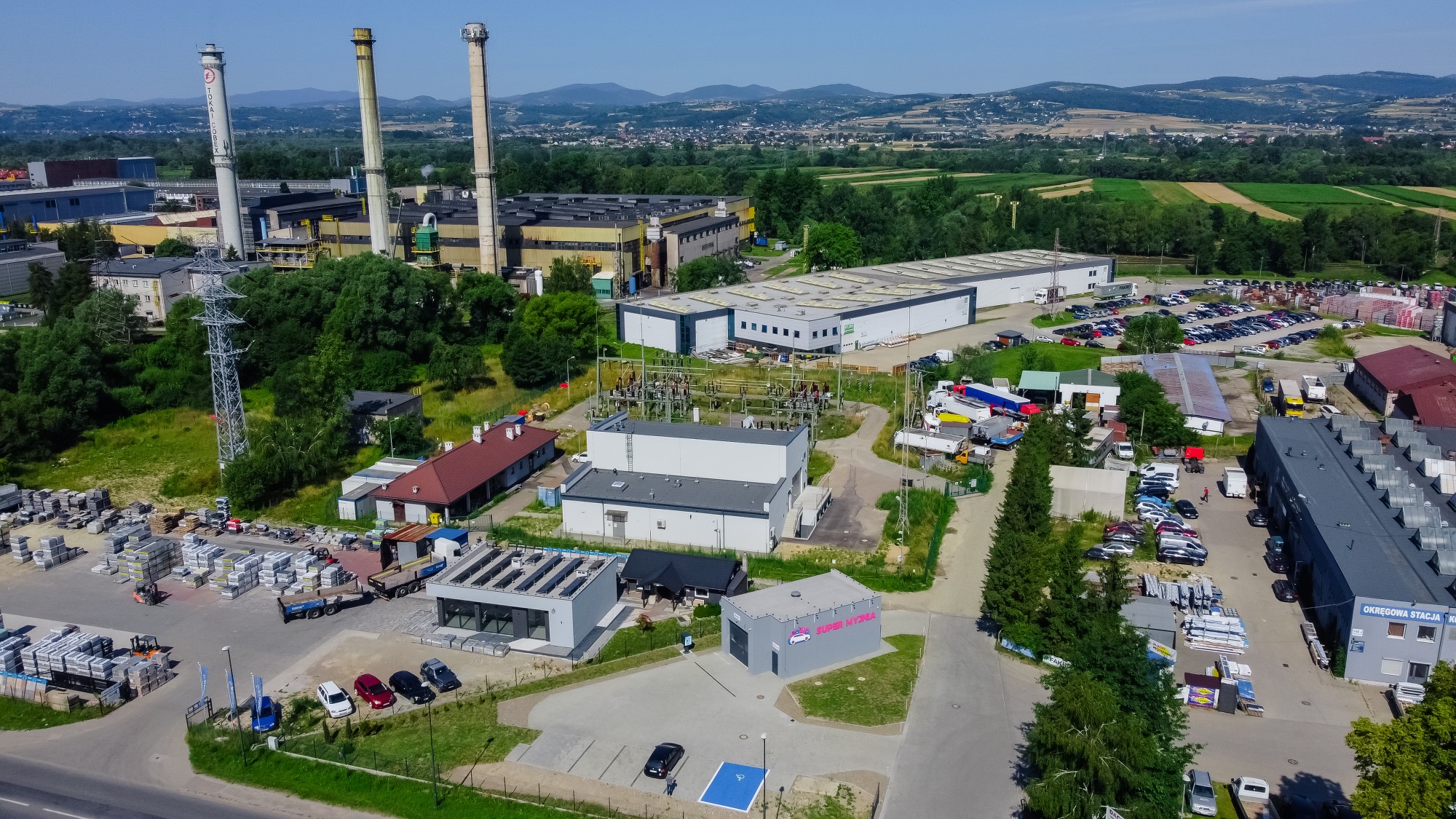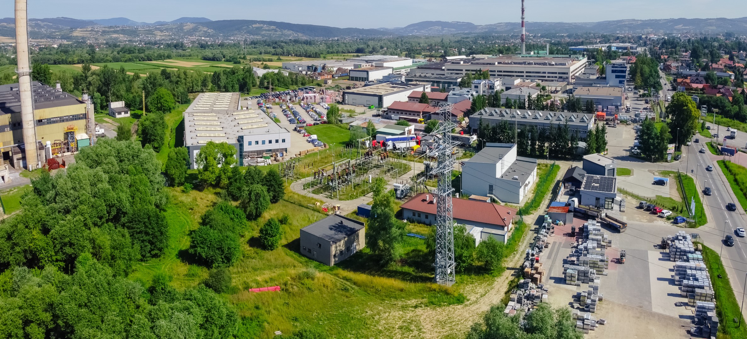 Obsługa geodezyjna projektu „Nowy Sącz Elektrownia” obejmowała precyzyjne pomiary niezbędne przy budowie i modernizacji infrastruktury energetycznej. Nasze prace koncentrowały się na monitoringu osiadania fundamentów pod ciężką maszynerię oraz wytyczaniu osi konstrukcyjnych nowych bloków energetycznych. Wykorzystując innowacyjne technologie, w tym fotogrametrię z niskiego pułapu (widoczną na ujęciach z drona w folderze), przeprowadziliśmy regularne naloty do stworzenia precyzyjnych ortofotomap terenu i kontroli postępu prac ziemnych, co pozwoliło na optymalizację logistyki placu budowy. Całość prac zwieńczyła kompleksowa inwentaryzacja powykonawcza, gwarantująca najwyższe standardy wykonania dla branży o strategicznym znaczeniu.