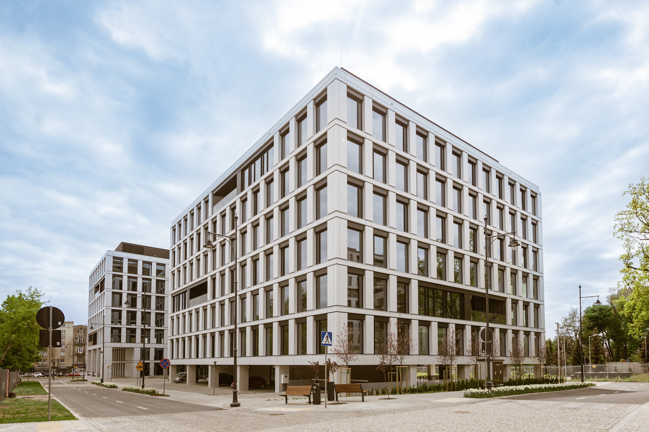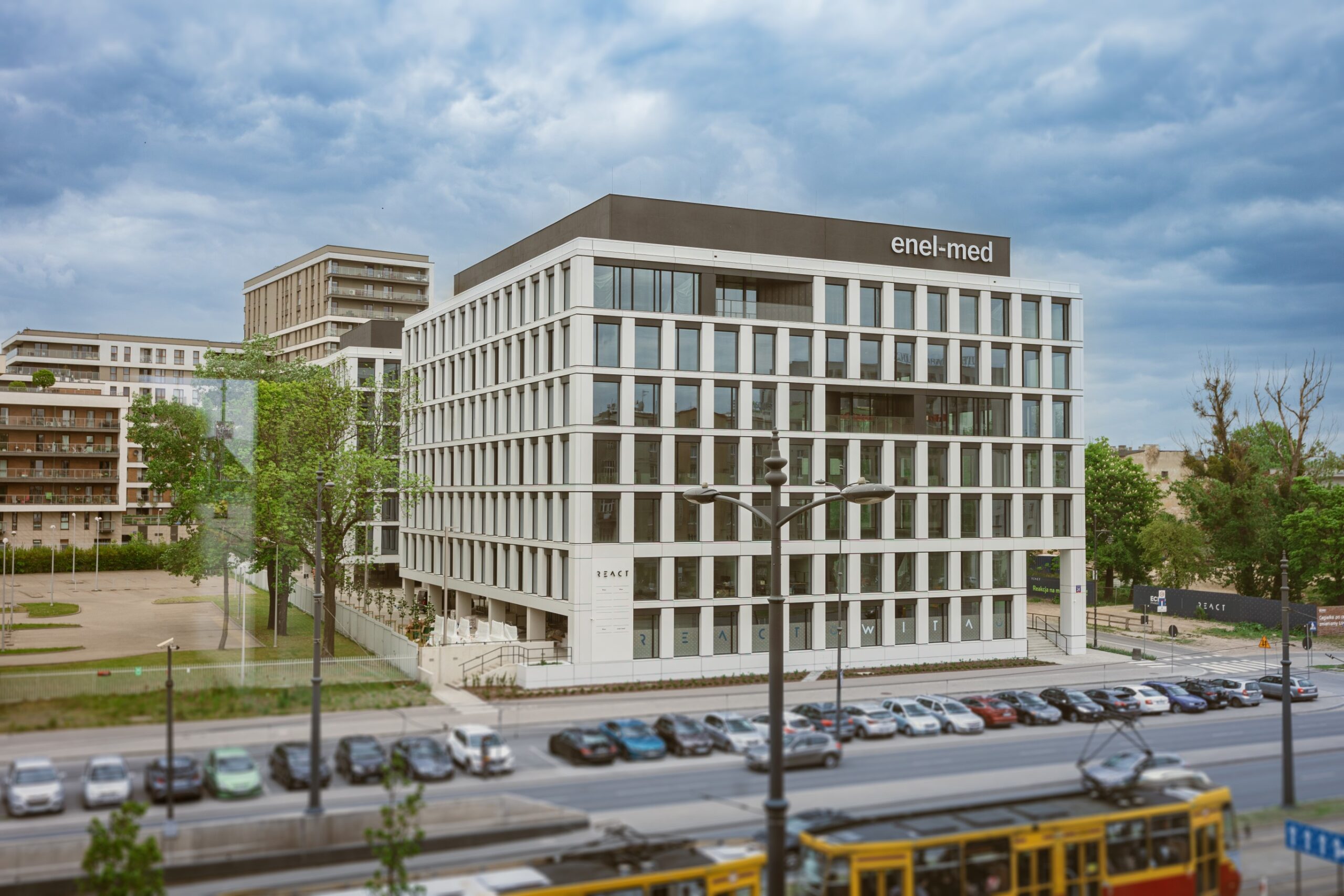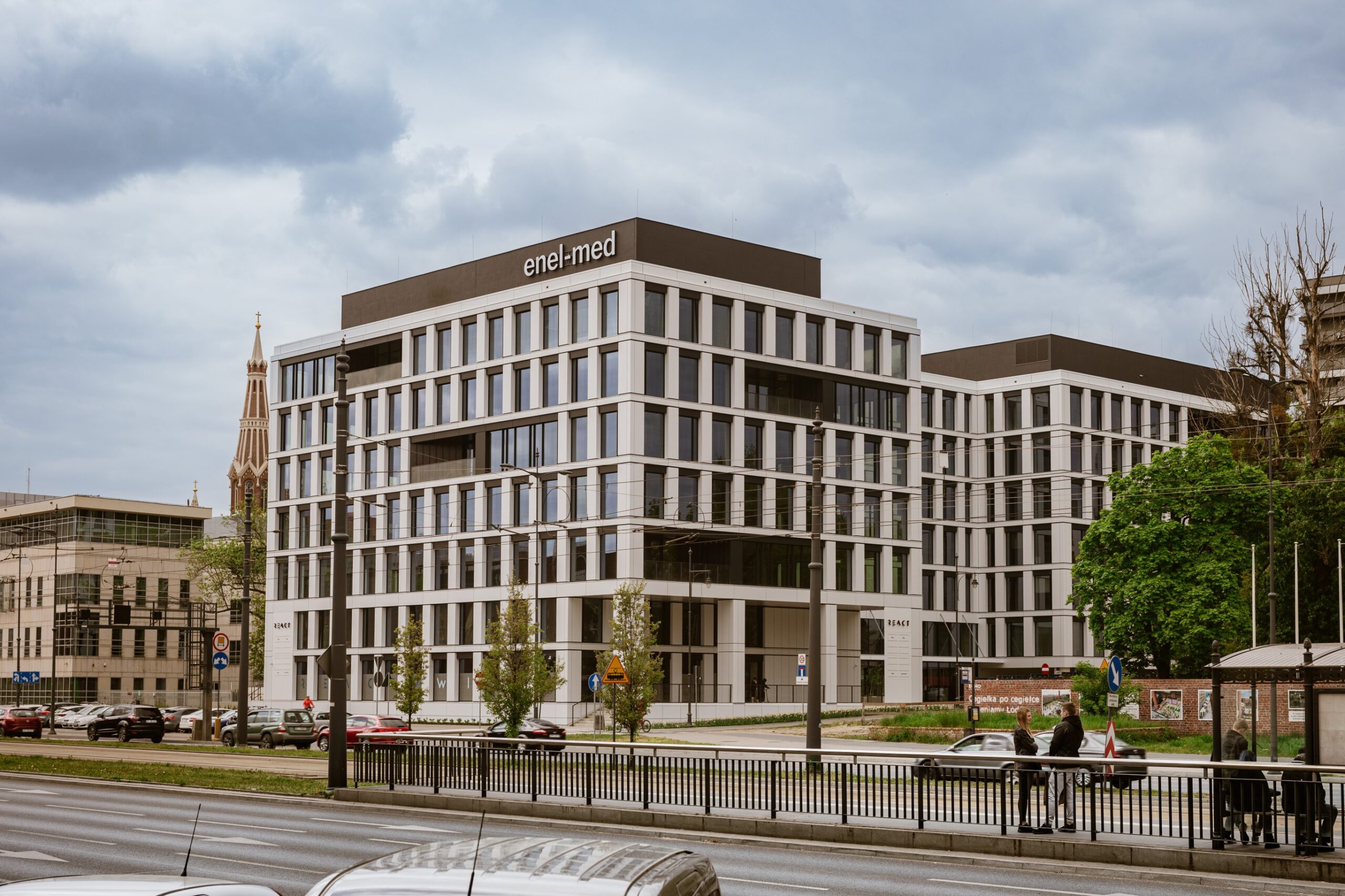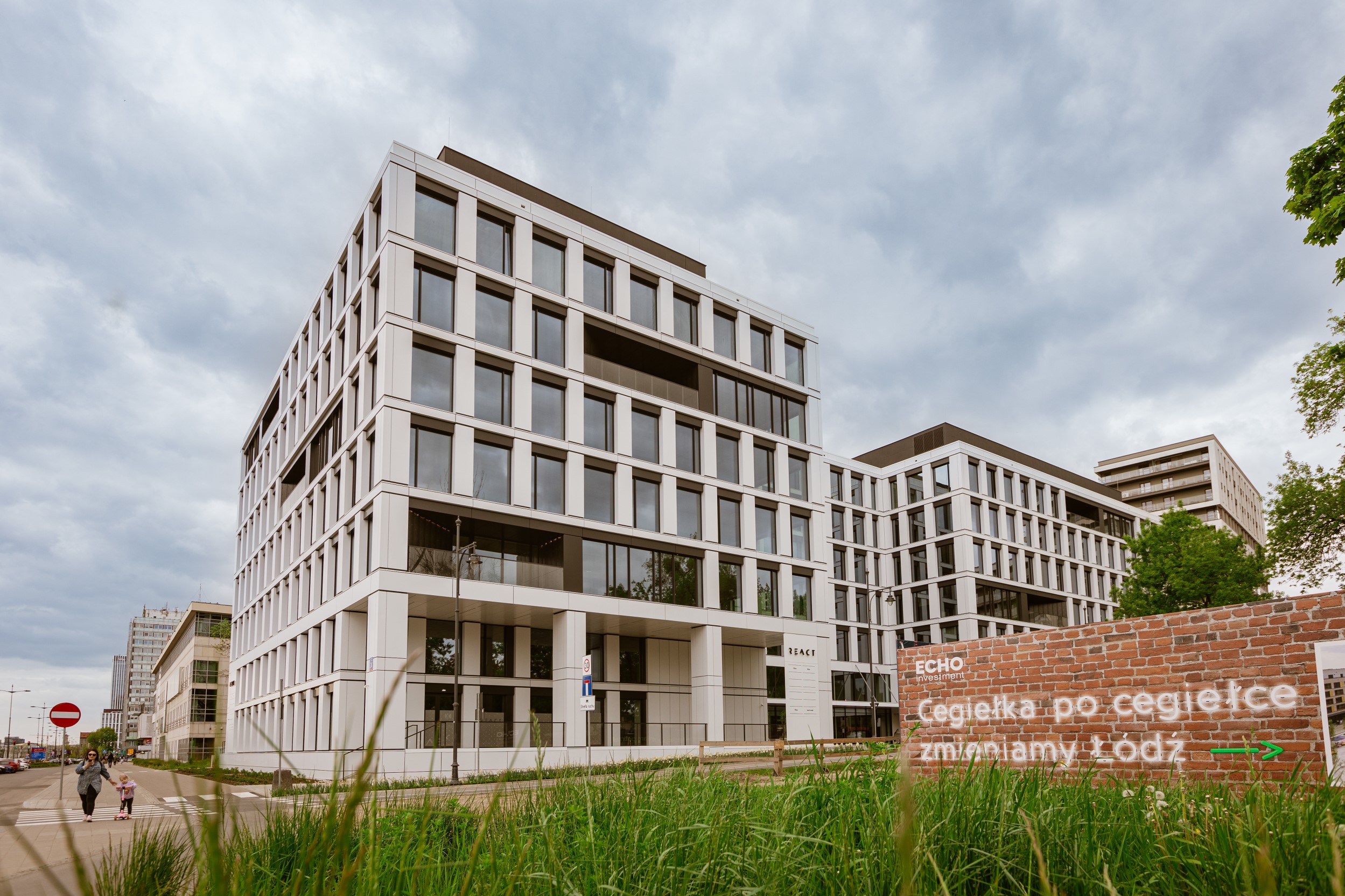 Realizacja biurowca React (projektu Echo Investment) wymagała od naszego zespołu zapewnienia najwyższej precyzji pomiarowej w samym centrum biznesowym Łodzi. Nasze wsparcie geodezyjne objęło pełny cykl budowy – od precyzyjnego tyczenia głębokich fundamentów, przez monitoring osiadań sąsiedniej zabudowy, aż po precyzyjne pomiary pod montaż eleganckiej, rytmicznej fasady obiektu. Dzięki wykorzystaniu nowoczesnych instrumentów pomiarowych, zapewniliśmy milimetrową dokładność osi konstrukcyjnych, co przełożyło się na sprawny montaż prefabrykatów i konstrukcji żelbetowej. Prace zwieńczyła szczegółowa inwentaryzacja powykonawcza, dokumentująca wysoką jakość wykonania tej nowoczesnej przestrzeni pracy.