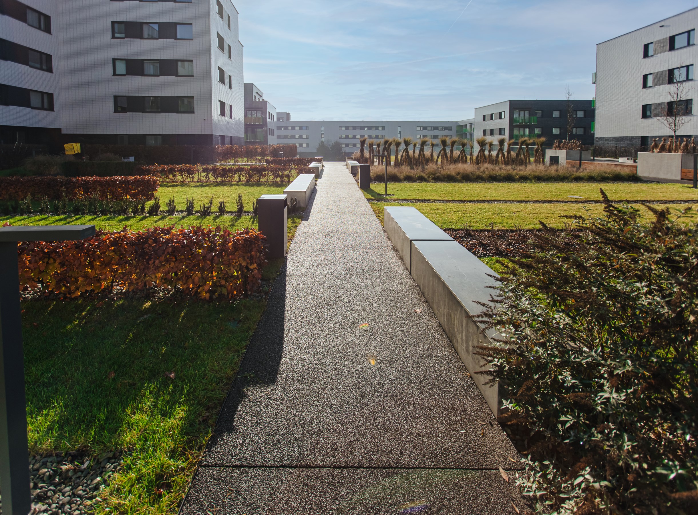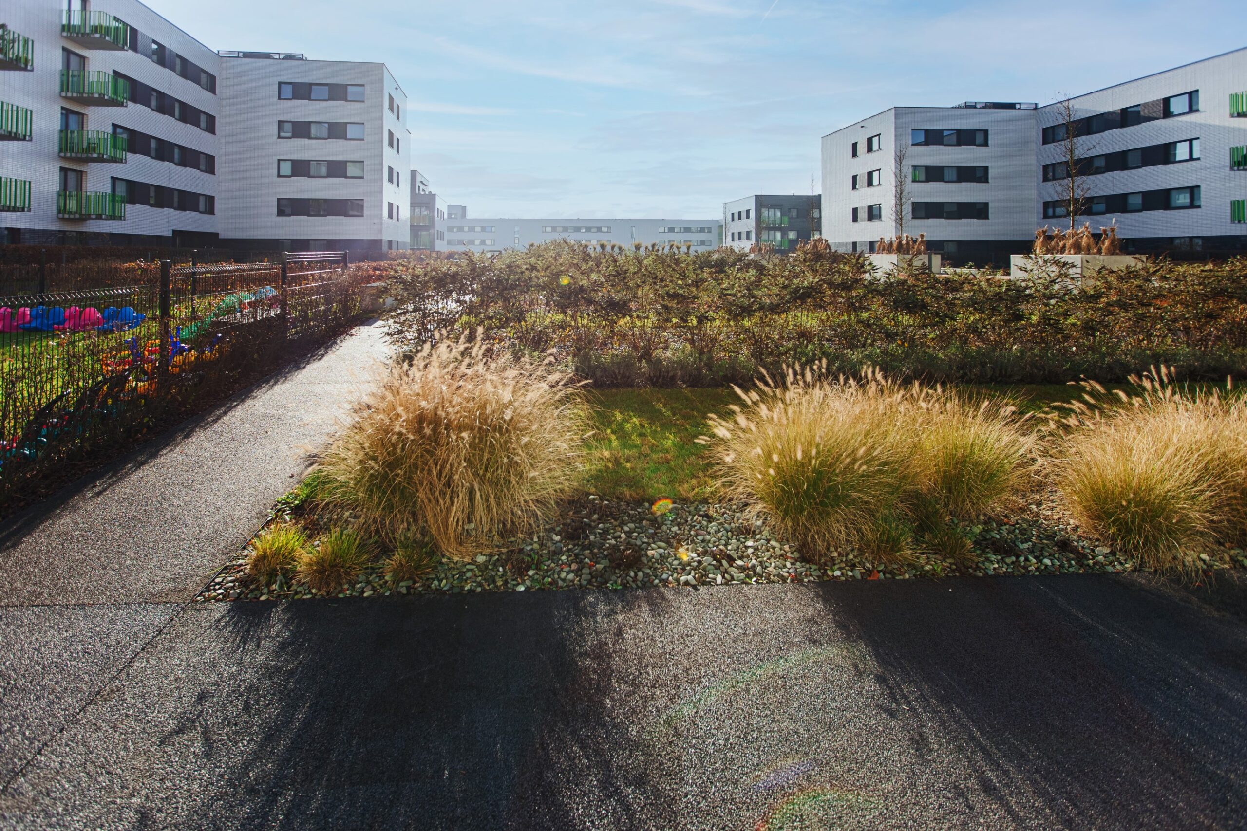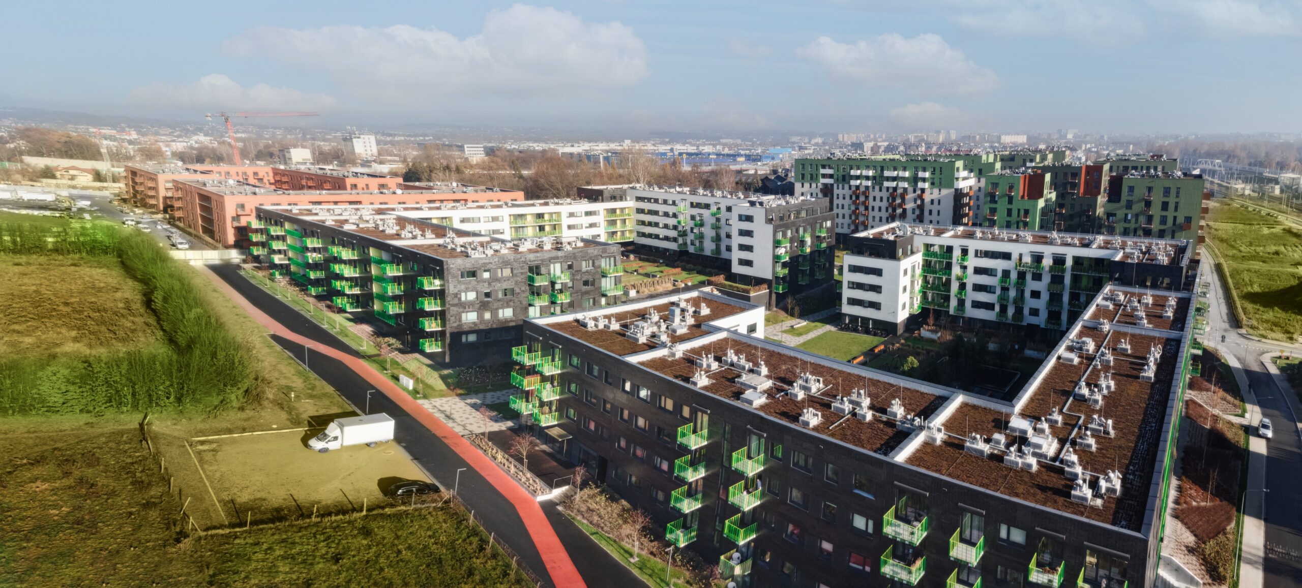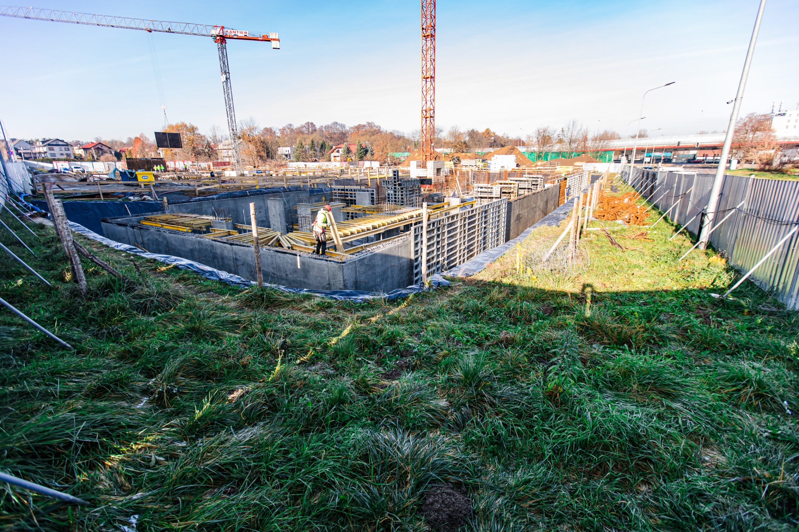 Obsługa geodezyjna tak rozległego i wieloetapowego projektu mieszkaniowego jak „Mieszkaj w Mieście” wymagała od naszego zespołu perfekcyjnej koordynacji oraz najwyższej precyzji pomiarowej na każdym etapie budowy. Zakres naszych działań objął precyzyjne wytyczanie osi konstrukcyjnych dla licznych budynków wielorodzinnych, stały monitoring prac fundamentowych oraz kompleksową inwentaryzację powykonawczą gęstej sieci uzbrojenia terenu. Zapewniliśmy również rzetelne wsparcie pomiarowe przy realizacji nowoczesnej infrastruktury drogowej i terenów rekreacyjnych osiedla, co zagwarantowało pełną zgodność całej inwestycji z założeniami urbanistycznymi dzielnicy.