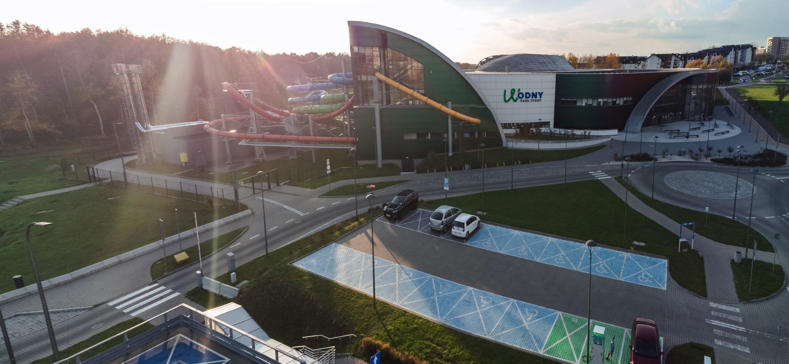 Prace geodezyjne związane z realizacją inwestycji Wodny Park Tychy. Obsługa obejmowała wsparcie pomiarowe przy wznoszeniu budynku o charakterystycznej, nowoczesnej architekturze oraz towarzyszącej mu infrastruktury rekreacyjnej i zagospodarowania terenu wokół obiektu