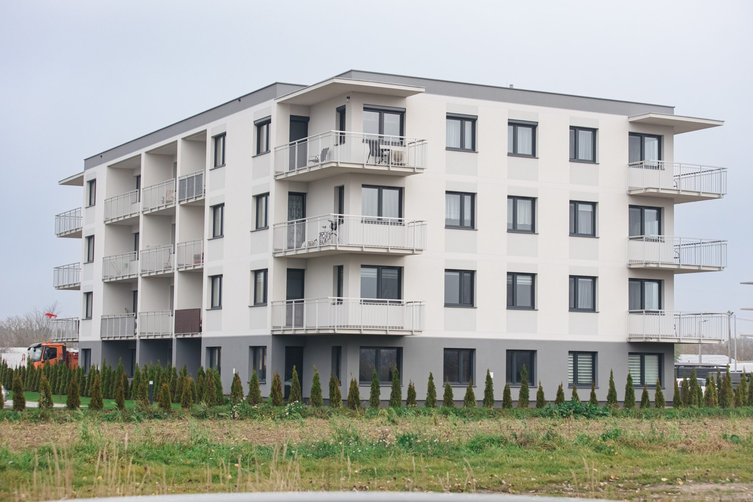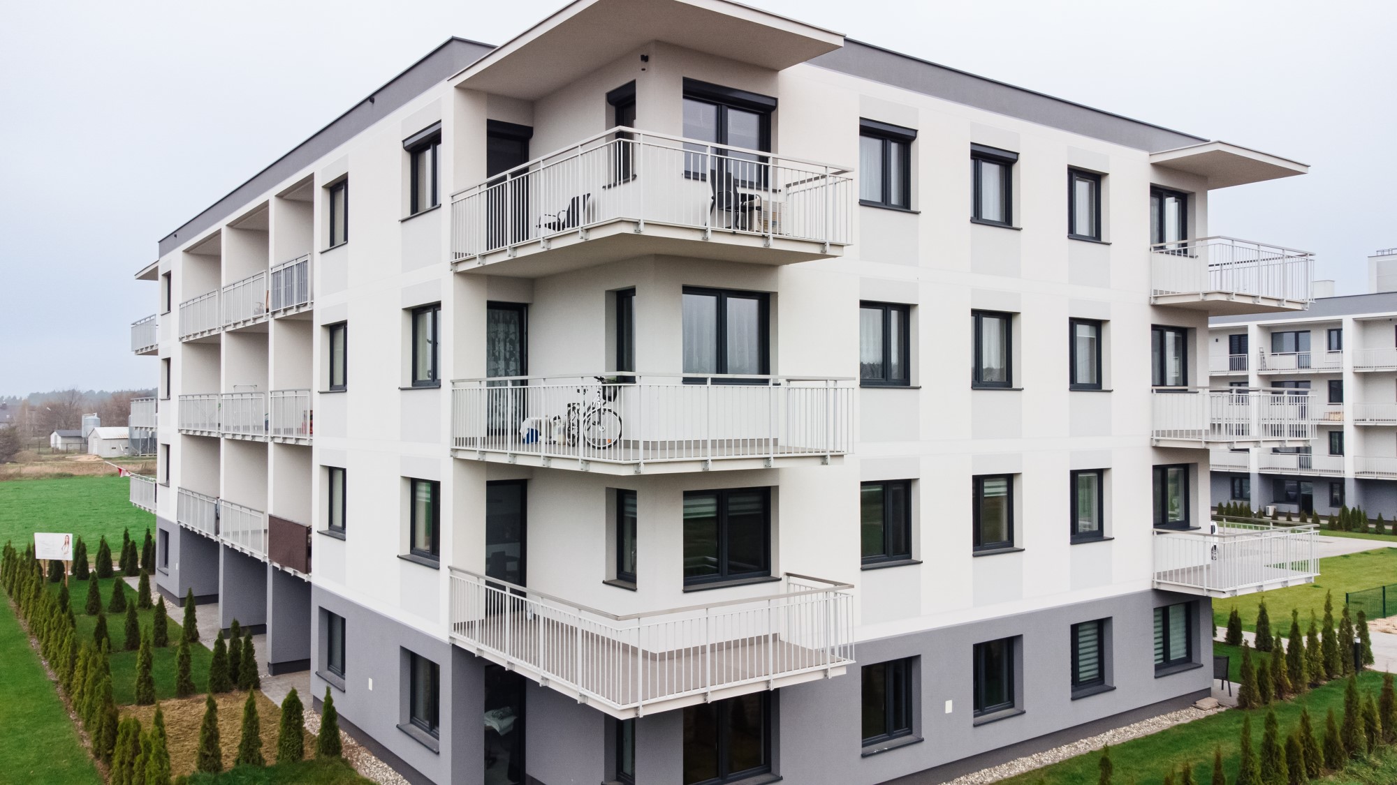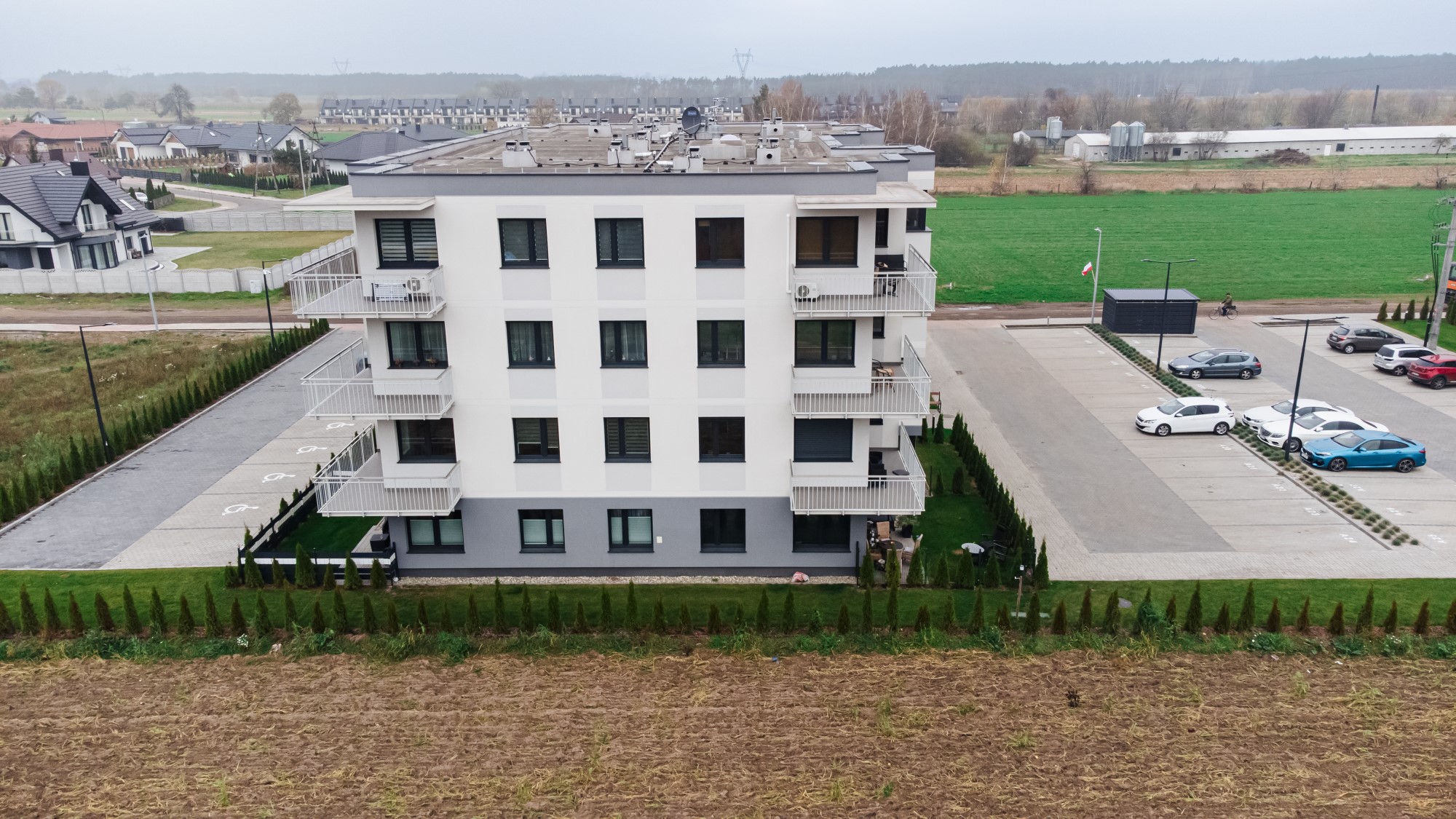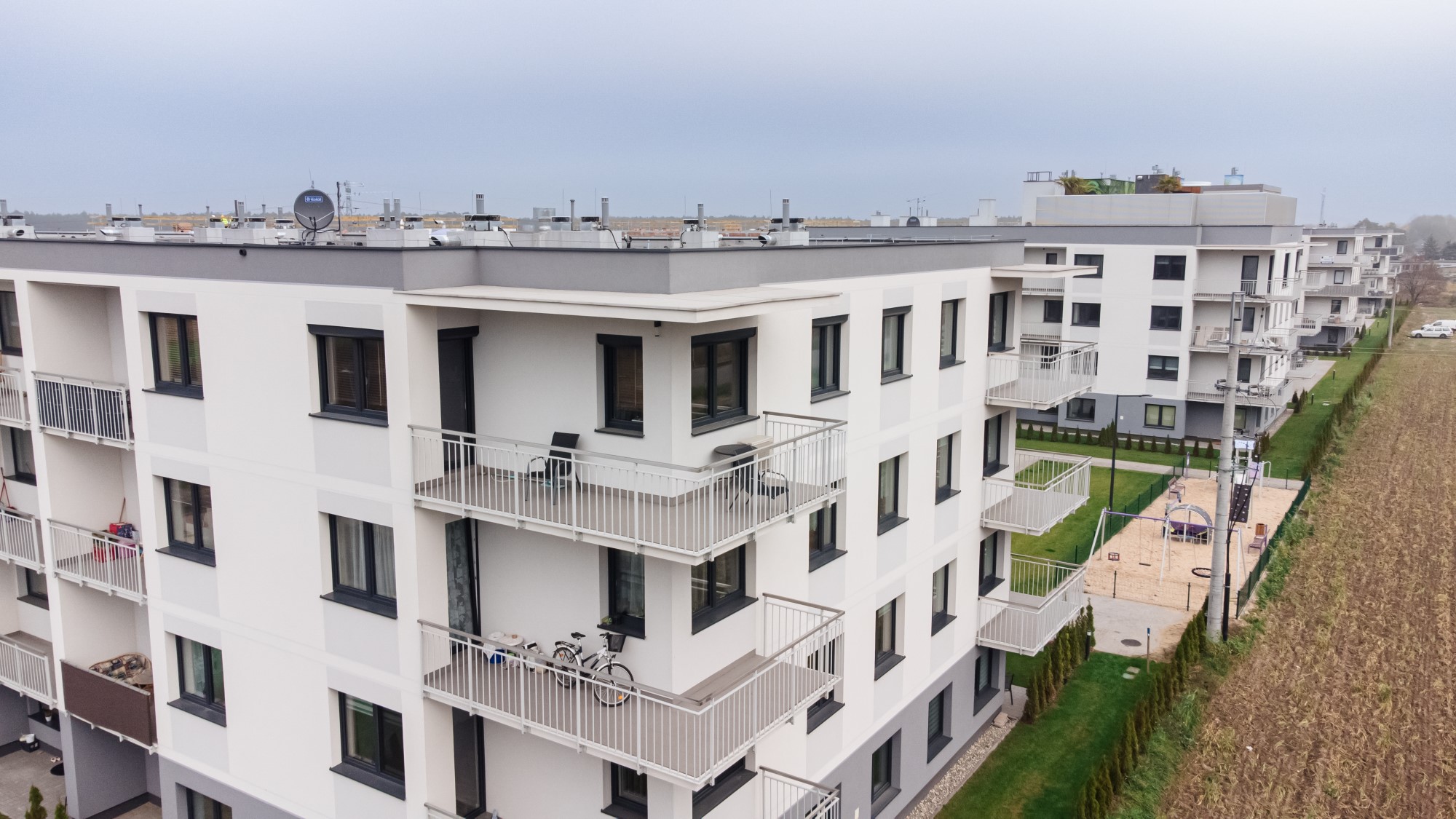 Prace geodezyjne związane z realizacją nowej inwestycji mieszkaniowej w Uniejowie. Projekt obejmował wsparcie pomiarowe przy wznoszeniu budynków wielorodzinnych oraz infrastrukturze towarzyszącej całemu osiedlu. Dokumentacja zdjęciowa przedstawia postępy prac na różnych etapach – od stanu surowego obiektów po fazę wykończeniową i zagospodarowanie terenu.