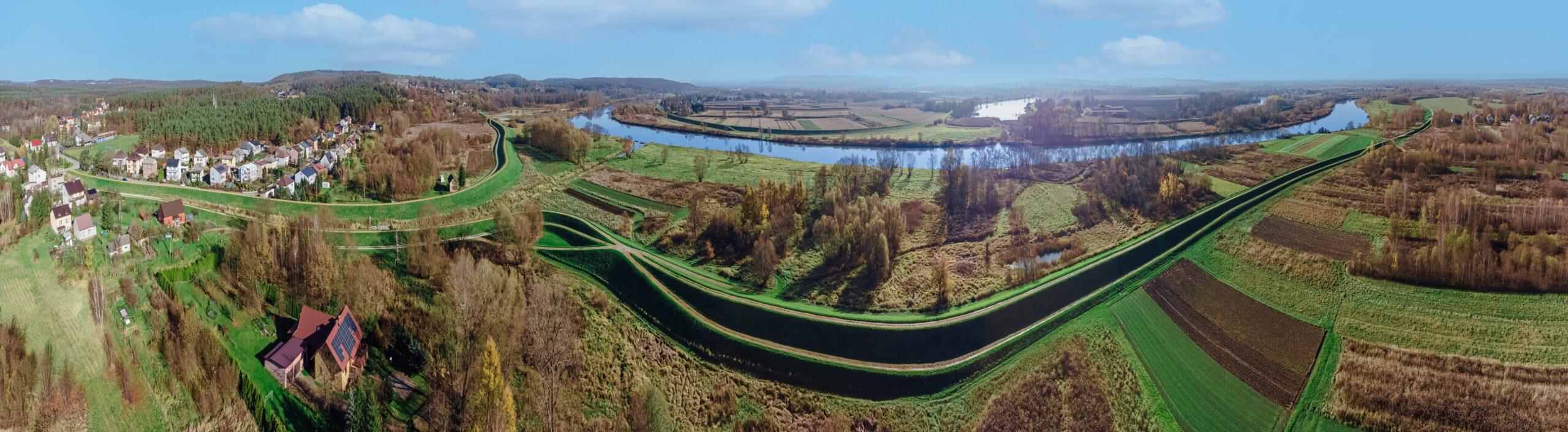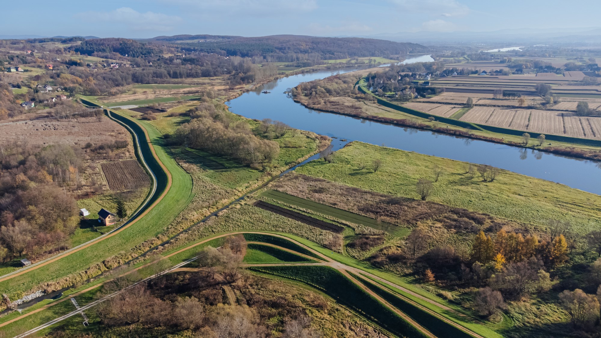 Realizacja prac geodezyjnych przy zabezpieczeniu przeciwpowodziowym doliny Wisły w rejonie Alwerni wymagała rygorystycznego zachowania parametrów wysokościowych. Nasz zespół był odpowiedzialny za precyzyjne tyczenie geometryczne korpusu wałów oraz bieżący monitoring prac ziemnych. W ramach zadania wykonaliśmy gęstą sieć profilowań poprzecznych i podłużnych, niezbędnych do prawidłowego uformowania nasypów oraz uszczelnienia podłoża. Wykorzystanie fotogrametrii niskiego pułapu pozwoliło na stworzenie precyzyjnej dokumentacji powykonawczej, dokumentującej kluczową infrastrukturę chroniącą region przed skutkami wezbrań rzeki.