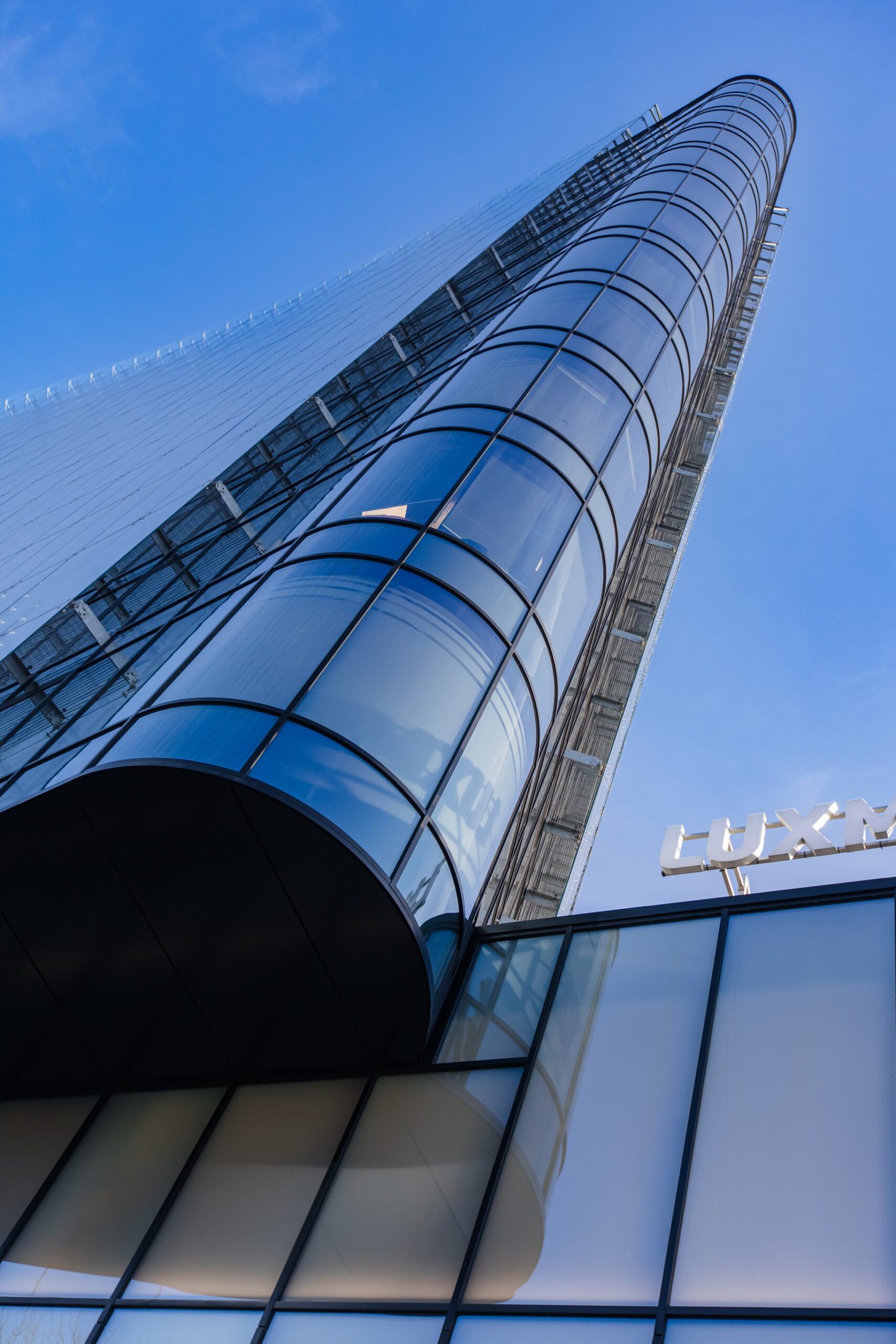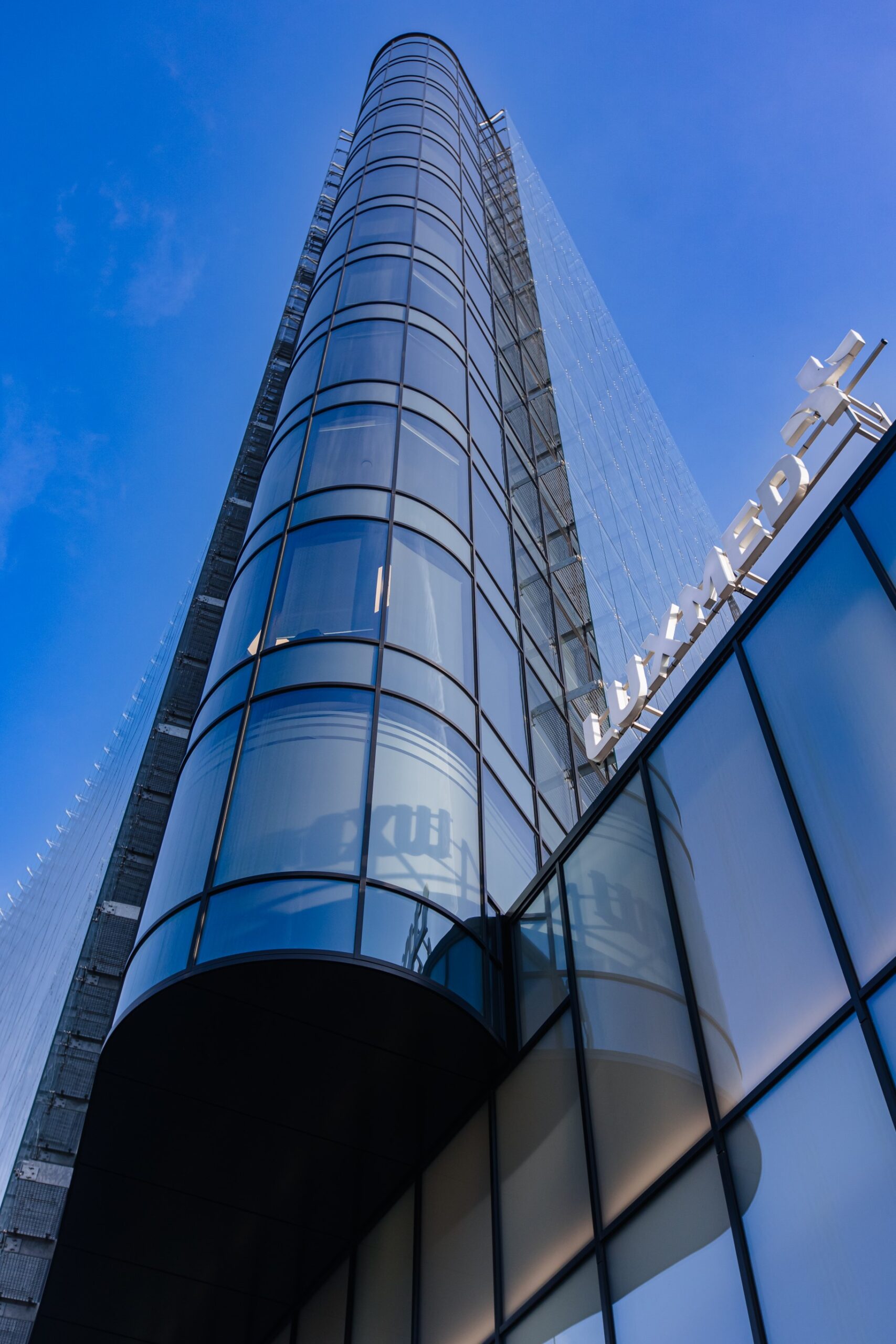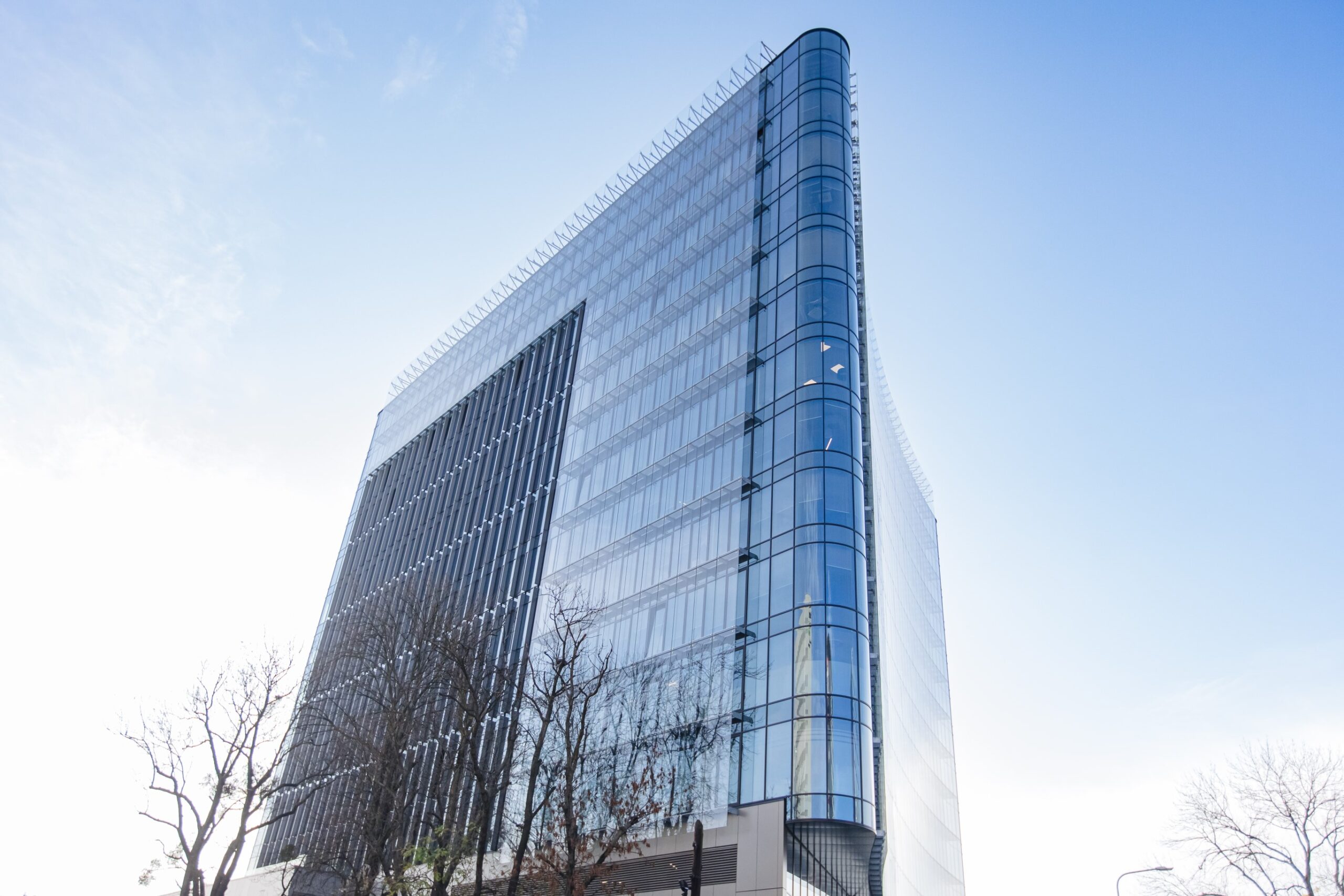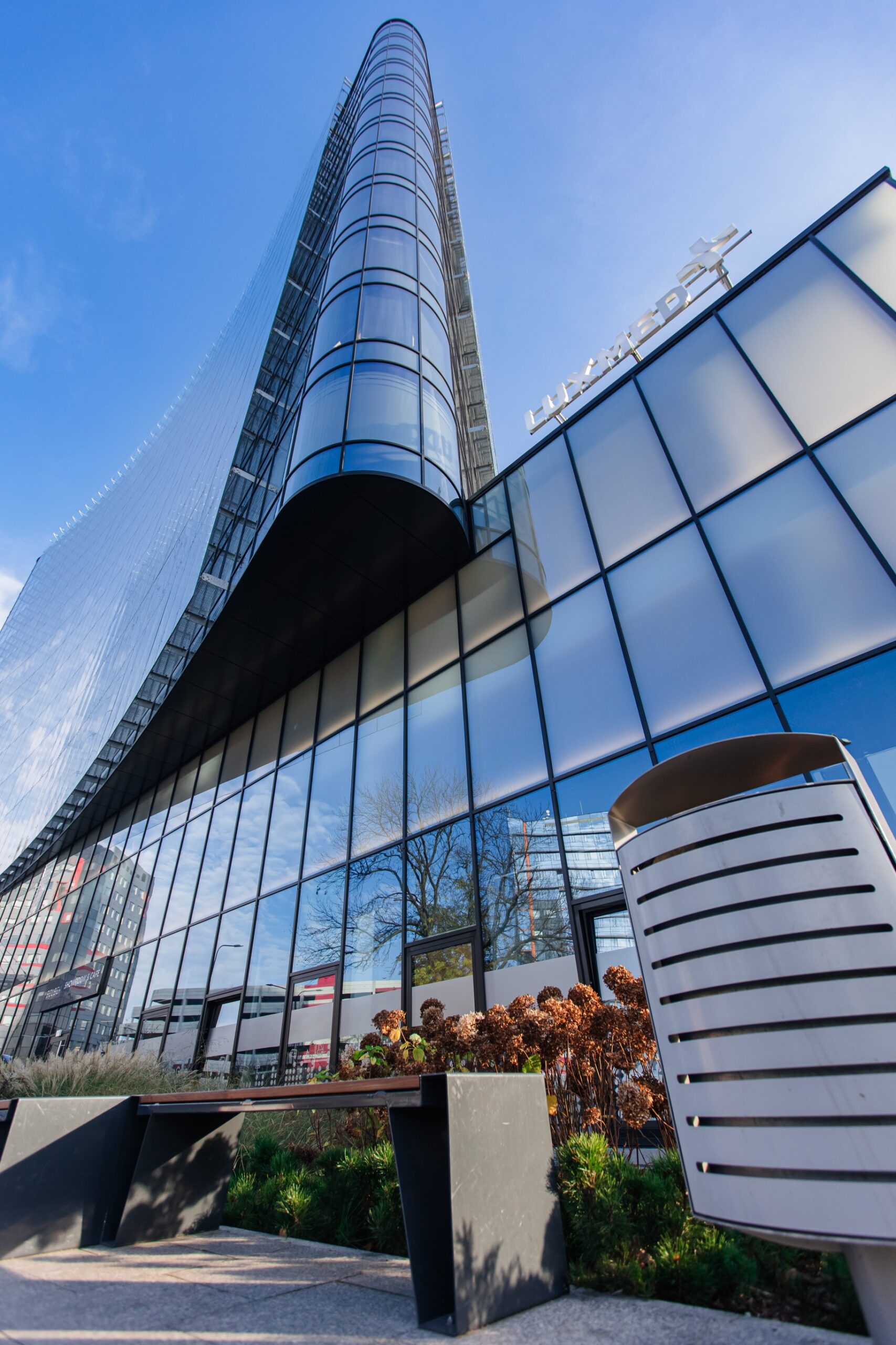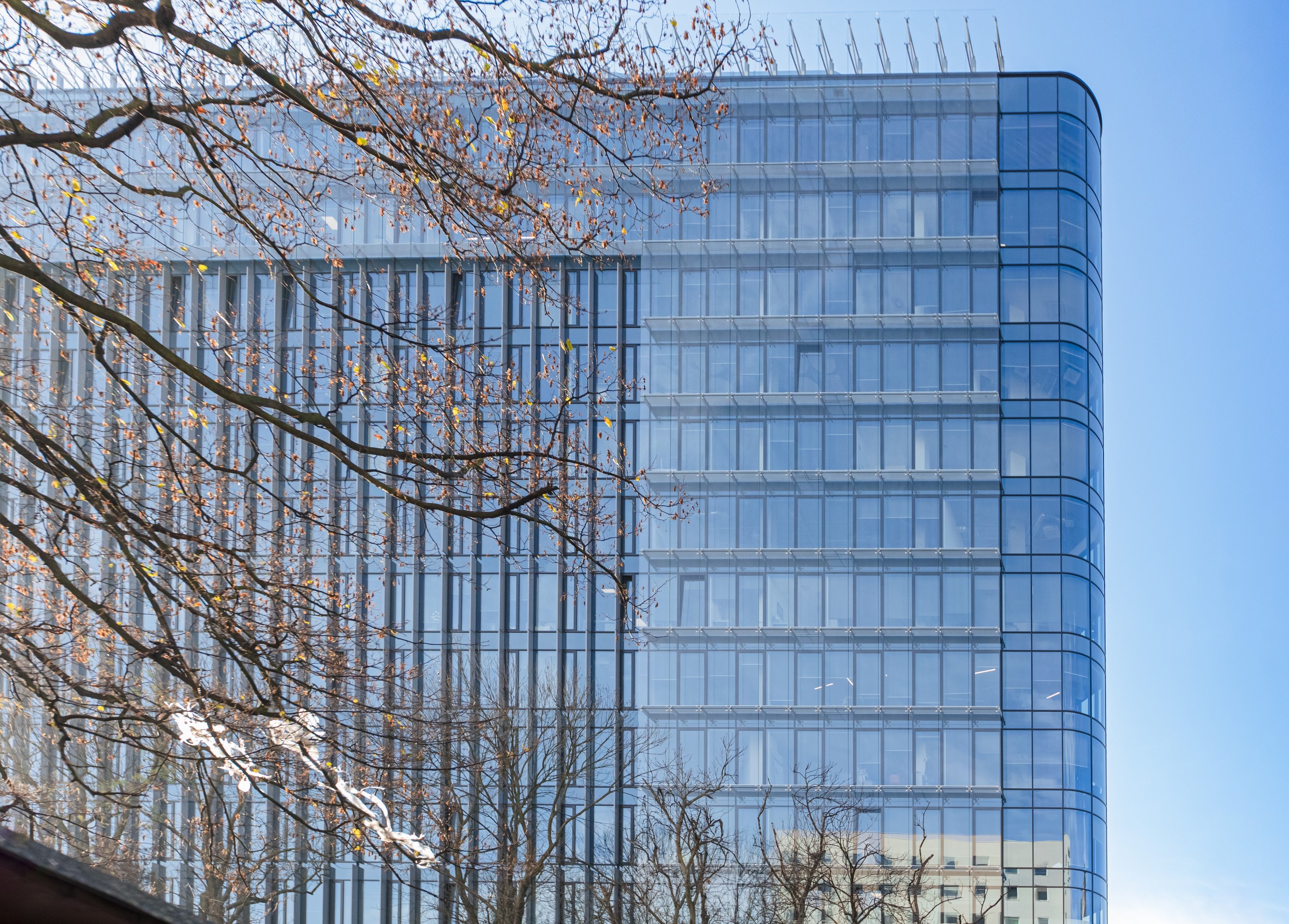 Prace geodezyjne związane z realizacją charakterystycznego biurowca Carbon Tower we Wrocławiu. Projekt obejmował wsparcie pomiarowe przy wznoszeniu obiektu o skomplikowanej bryle i nowoczesnej, szklanej elewacji. Dokumentacja zdjęciowa przedstawia gotowy budynek, kładąc nacisk na jego unikalną geometrię oraz detale konstrukcyjne fasady, które wymagały precyzyjnego nadzoru geodezyjnego.